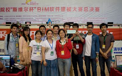 由中国建设教育协会主办,深圳市斯维尔科技有限公司承办,南昌大学和沈阳建筑大学协办的第五届全国高等院校学生斯维尔杯BIM软件建模大赛于2014年5月17-18日在南赛区江西南昌大学和北赛区沈阳建筑大学同时举行。beat365手机版官网入口组织了由2010级和2011级给排水科学与工程专业的10名同学组成的2支队伍参加了所有8个单项的比赛。本次比赛赛制为网络晋级赛、现场总决赛二级赛制,报名院校226所,注册团队2488支。经过艰苦的比赛,Citizen Jump队获得了《设备设计与暖通负荷》、《节能设计与日照分析》、《建筑设计》三个单项三等奖,团体全能三等奖;Mr.给排水队获得了《设备设计与暖通负荷》单项二等奖,《节能设计与日照分析》、《三维算量与清单计价》、《安装算量与清单算量》三个单项三等奖,团体全能三等奖。