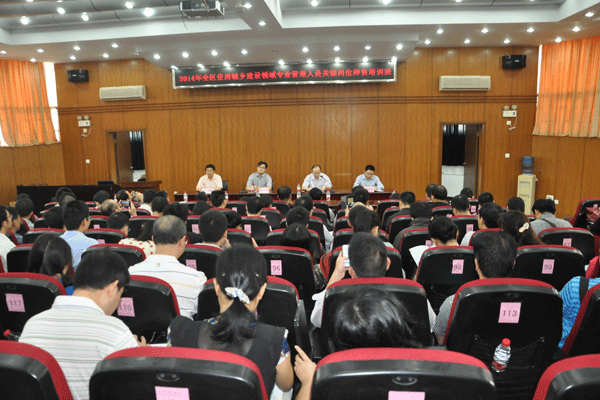 4月18日上午,由广西/广西壮族自治区住房和城乡建设厅培训中心(广西建设执业资格注册中心)主办、我院协办的2014年全区住房城乡建设领域专业管理人员关键岗位师资培训班在屏风校区9501报告厅举行开班典礼。广西住建厅培训中心党委书记曾全方、副主任王昭等出席开班典礼。来自全区三十多个关键岗位培训单位的157名任课教师参加开班典礼。