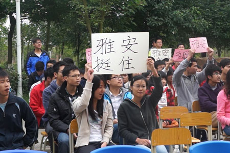 与会师生自发地为雅安祈福