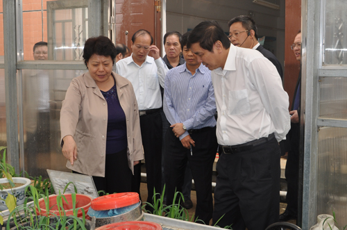 李康副主席一行参观考察了我院水污染控制国家级实验教学示范中心、环境污染与植物修复实验室植物培育基地及下设的环境地球化学实验室、地下污染物控制与模拟处理实验室、生活污水模拟处理实验室等功能实验室,对我院环境科学与工程学科博士点建设凝练出的有色金属矿区环境污染与生态修复、水污染控制技术、岩溶区环境地球化学与水资源保护、环境分析理论与技术四个研究方向给予了高度评价,赞赏这四个方向很有特色。在环境污染与植物修复实验室植物培育基地,李康副主席详细地询问了环境修复植物“李氏禾”的生长分布情况及对铬等重金属的吸附情况。当得知广西的气候条件很利于“李氏禾”的生长时,李康副主席高兴地说:“环境保护非常重要。广西工业需要发展,环境污染就必须及时治理,不然会出大问题,这个基地非常好,要好好做下去。”