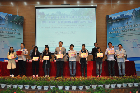 会议闭幕式上,海外华人环保协会为我校张学洪校长和我院王敦球院长颁发了海外华人环保协会杰出贡献奖,同时为本次会议评选的10篇优秀教师论文和30篇优秀研究生论文颁发获奖证书和奖金。我院赵文玉副教授的论文"污水再生处理雾化曝气臭氧氧化运行费用分析"获得优秀教师论文,研究生李亮和王思明的研究论文分别获得优秀研究生论文。此次会议的召开极大地促进了海内外专家学者以及研究生之间在环保方面的交流与学习。