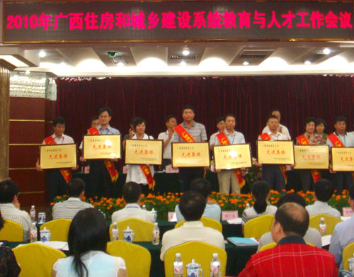9月29日,广西住房和城乡建设厅在南宁召开全区建设教育与人才工作会议,我校beat365手机版官网入口副院长曾鸿鹄教授等作为代表出席了本次会议。会议总结了2006—2010年全区住房和城乡建设系统教育与人才工作;讨论并制定了《广西住房城乡建设系统“十二五”教育与人才发展规划》;对2006—2010年全区建设教育工作先进集体和先进个人、全区人才工作先进集体和先进个人进行了表彰。我校beat365手机版官网入口喜获广西建设教育工作先进集体荣誉称号。