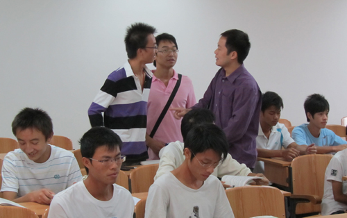 课前,学院党委副书记周章明老师与2010级学生亲切交谈