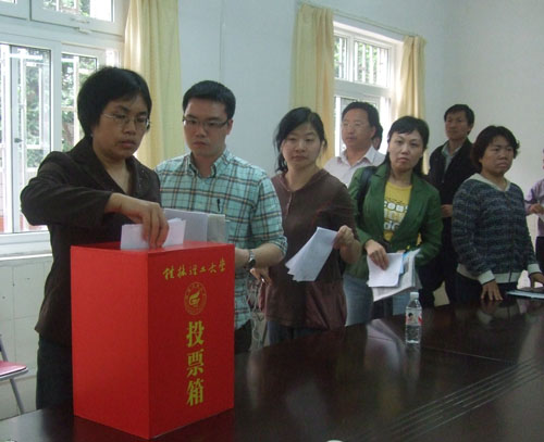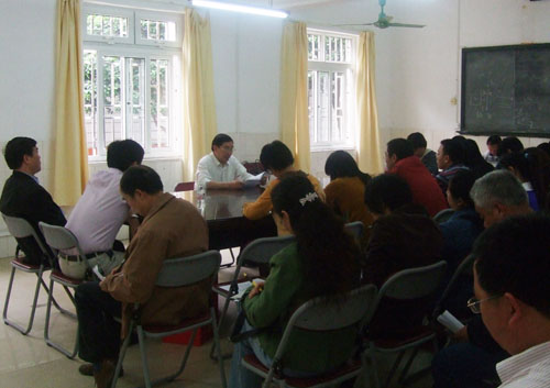 随后,学院党委书记卢英、院长刘康怀、党委副书记周章明、副院长曾鸿鹄、朱义年、方荣杰分别就任职以来自己分管的工作向全院教职工进行了述职汇报。工作人员向我院教职工发放了“桂林理工学中层领导班子任期测评表”和“桂林理工学中层领导岗位人选推荐表”。与会人员对我院领导干部进行了任期测评,对相关领导岗位干部人选进行了民主推荐,并现场进行了无记名投票。