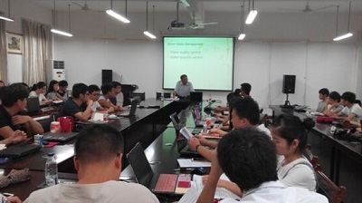课程授课主要内容包括:1)水资源系统和可持续水资源管理概念、管理方式及影响因素;2)可持续水资源管理中TR-55软件的使用;3)海绵城市的概念与意义;4)污泥的硝化反硝化技术及污水的脱氮新工艺。张建祺高级工程师结合自身的工作实践和教学计划设计课程教学内容,将丰富的工程实践经验引入课堂,把美国在水资源管理的最新理念讲授给学生,理论联系实际,深入浅出地为学生讲解重点难点,引导学生思考与分析我国目前水资源管理存在的主要问题。在课堂上张建祺高级工程师积极与学生互动交流,课堂气氛活跃,丰富了学生专业知识,拓宽了国际视野,而且培养了良好的创新思维习惯和意识。