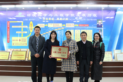 李艳红副院长代表女职工工作室对工作室的建设进行了相关介绍。李副院长带领陈副主席及各位领导先后参观了学院国家级实验教学示范中心、水污染控制实验教学示范中心、雁翔女职工创新工作室,学院成果展览室等。巾帼不让须眉,由学院26名奋战在教育第一线的女教师组成的巾帼科研攻关突击队曾获“全国五一巾帼标兵岗”荣誉称号。最后,桂林市教育工会常务副主席陈维琴为我院“雁翔女职工创新工作室”授牌。这是我校首批建设的女职工创新工作室,为我院女职工搭建了新的教学科研创新平台。