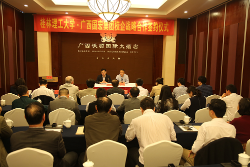 签约仪式上,广西国宏经济发展集团有限公司董事长罗勇介绍了公司的概况,并表示期待与我校开展广泛的交流合作,共同服务于国家“一带一路”倡议。王敦球副校长代表学校感谢国宏集团一直以来对学校发展的支持,并介绍了学校的概况、发展历程,希望将学校在人才与科研技术等方面的优势与国宏集团在企业资源方面的优势相结合,不断 拓展双方合作领域,促进共同发展。