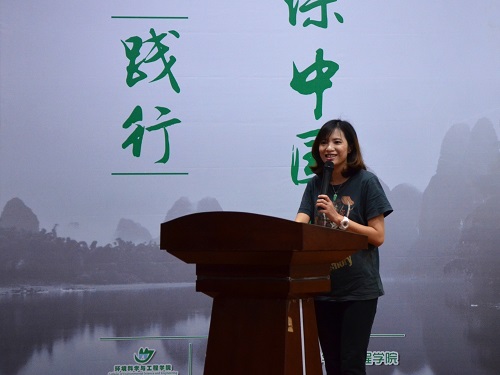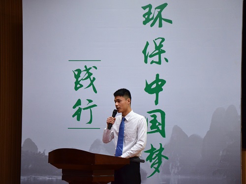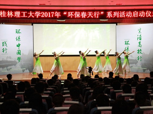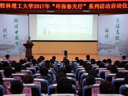 恰逢第48个世界地球日之际,4月22日上午,beat365手机版官网入口2017年“环保春天行”系列活动在雁山校区图书馆报告厅正式启动。出席启动仪式的领导和嘉宾有学校副校长王敦球教授、校团委书记周国桥、环境学院党委书记王璐、副院长游少鸿、李艳红、党委副书记郝文佳以及环保创客联盟项目代表何艾莉女士与李文亮先生,部分教师与学生代表也共同参与了本次活动。
