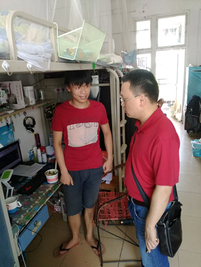 为进一步传达学校安全稳定工作的重要性,为同学们营造安全舒适的学习环境,2017年5月28日,学院副院长(主持工作)游少鸿、党委副书记郝文佳带领学工办老师走访了学生实验室、本科生宿舍。