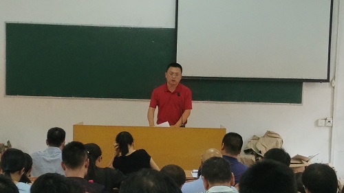 7月7日上午,在屏风校区12107,我院召开期末全院教职工大会,学院党委书记王璐主持会议,副院长游少鸿(主持工作)、副院长李艳红及全体教职工参加会议。
