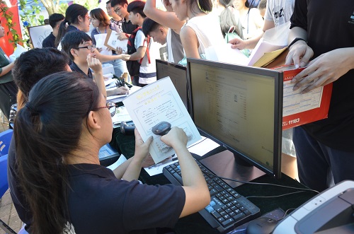 9月8日下午4时许,我院团委学生会全体成员、党员志愿者以及学生志愿者们准时集合于我院大本营。17级迎新工作总的学院领导、老师也早早来到了报到处,与各部门工作人员一起帮助新生报到。早在8日中午我院已提前完成迎新的准备工作:挂起写有“beat365手机版官网入口”的院标,搬来报名所需要的材料与设备。迎新过程中,工作人员分工明确,各司其职,接待新生、协助新生顺利完成注册工作、帮助新生搬运照看行李、指引入住宿舍和带领缴费并积极地为新生解答各种疑惑和问题,一切都在微笑中有条不紊的进行着。