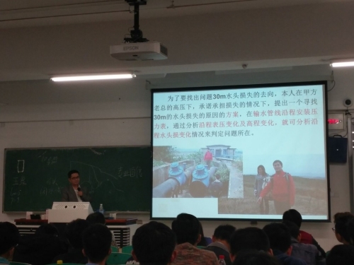2017年10月27日,我院赵文玉副教授应南京工业大学城市建设学院市政工程系的邀请,做了“水泵选型工程案例分析”的专题讲座(http://csjsxy.njtech.edu.cn/view.asp?id=2705&class=672),围绕实际工程中水泵运行过程中存在问题的分析、解决过程,结合泵与泵站课程知识点展开,开拓学生视野,启发解决问题的思路,讲座气氛活跃,学生反响良好。