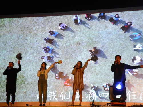 在晚会的现场设有我院公众号的直播、微信留言墙,一句句正能量的加油词,一条条诙谐搞笑的段子,成了整个晚会现场亮丽的风景线。晚会中还有许多互动环节,嘉宾老师与场上同学互说新年祝福语,随机抽取“最美笑脸”等等。晚会接近尾声,全体同学合唱《今天你要嫁给我》、《给你们》,将满满的祝福送给即将步入婚姻殿堂的学院辅导员黄兆凡老师。本场晚会形式多样,动静结合,精彩不断,高潮迭起,为在场的观众献上了一场精彩绝伦的视听盛宴,高质量的晚会节目也充分展示了我院学子朝气蓬勃的精神风貌和力争上游的决心。