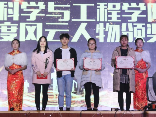 颁奖典礼上,学院党委郝文佳副书记首先发表新年致辞,他对学院各项工作做了简要的总结,对一年来老师和同学们辛勤的付出和取得的成绩表示充分的肯定和由衷地感谢,希望广大师生以十九大精神为指引,在2018年能够取得更大的进步。伴随着辅导员老师们的祝福视频,主持人依次介绍了年度风云人物的奖项类别和获奖条件,最后由现场老师上台宣布获奖同学名单并分别为其颁奖,现场响起一阵阵热烈的掌声。