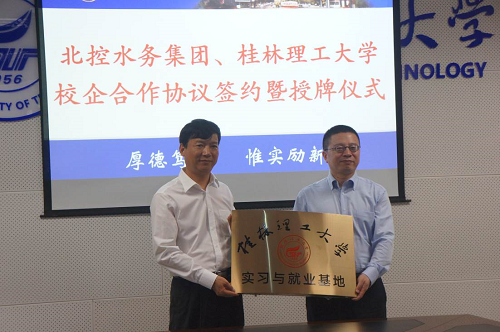 5月31日上午,我院与北控水务集团有限公司、北控城市资源集团有限公司校企合作框架协议签约暨基地授牌仪式在雁山校区第四会议室(行知楼A201)举行。我校校长解庆林教授、北控水务集团高级副总裁于立国、北控水务集团总裁助理兼南部大区总经理简畅、北控水务集团南部大区副总经理兼广西业务区副总经理黄贵新等出席仪式,北控水务集团部分领导、我院负责人及教师代表参加了仪式。仪式由我校副校长王敦球教授主持。