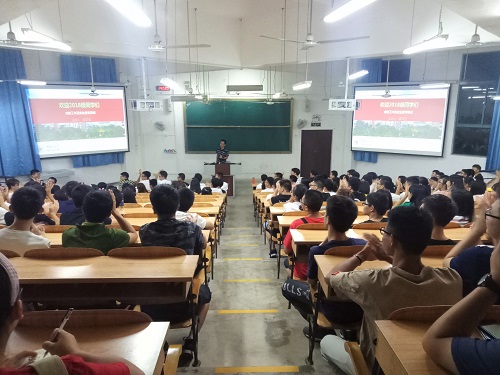 会上,学院老师与新生进行了亲切的自我介绍,之后学院党委副书记郝文佳老师代表学院向2018级新生的到来表示热烈的欢迎和衷心的祝贺,同时向同学们讲述了美好的大学生活,回顾了学院发展的历史,从学院教学师资力量、科研实践平台等方面介绍了学院的综合实力,他鼓励同学们要坚持理想和信念,鼓励大家积极参与科技创新活动,提高创新学习能力,做好大学生涯规划,并预祝大家有个充实的大学生活。
