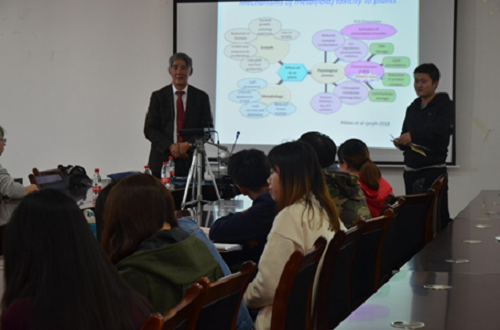 10月17日上午,根据行程安排,覃礼堂老师带Geoffrey教授参观了beat365手机版官网入口雁山校区beat365手机版官网入口办公大楼,张立浩老师带Geoffrey教授参观了beat365手机版官网入口广西环境污染控制理论与技术自治区级重点实验室。10月17日下午2点,Geoffrey Sunahara教授应陈喆老师邀请在环境学院报告厅给环境工程专业本科生和研究生作了关于“有色金属矿山尾矿库相对毒性评价”的主题学术讲座,讲座持续1个小时,教授深入浅出地介绍了特定场地土壤环境中污染物浓度、生物毒性及其环境暴露风险之间的关系,受到学生们的热烈欢迎,外国专家与我校师生就当前严重的尾矿场地污染问题进行了深入交流,随后教授对我们的提问做了耐心且细致的解答并为我院环境科学与工程专业的发展提出了更高的要求与期待。此次交流会开拓了我院师生的学术视野,促进了我校与国际土壤修复同行间的交流与合作。