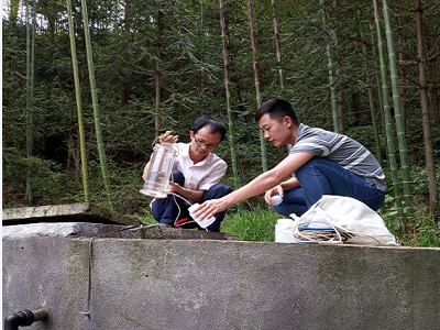 学院专家工作站成员采集蓄水池水样