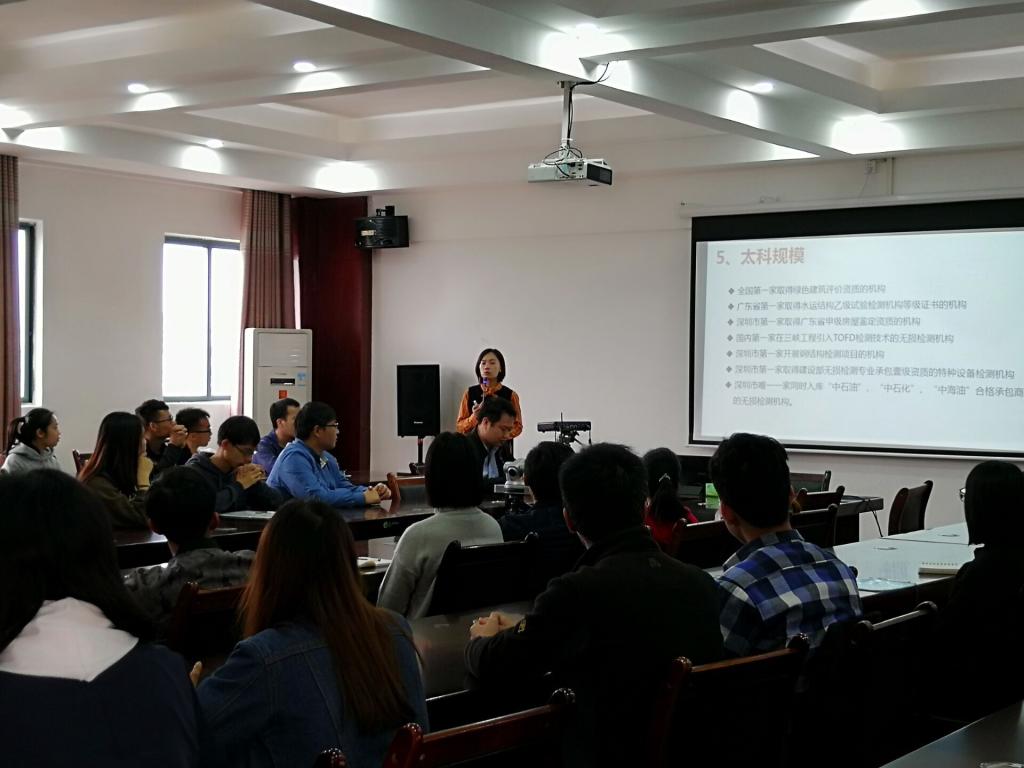2019年4月16日,深圳市太科检测有限公司校园专场招聘会与我院携手在萃华楼召开专场招聘会。
