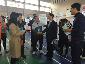 双选会开始后,我院领导来到现场了解毕业生双选会基本进展与招聘会组织情况,询问各单位的基本情况与用人需求并与参会学生交流,对同学们在就业过程中遇到的困难与问题进行解答。鼓励同学们树立正确的就业观做好长远职业规划,引导他们理性看待就业形势,把握政策导向,转变就业观念。