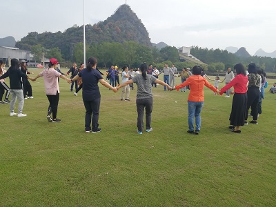 到达园区后,我院工会老师先后组织了抱团打天下、同舟共济、萝卜蹲等几个趣味活动。老师们积极参与各个项目,活动现场热情高涨、热闹非凡。