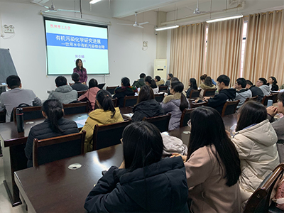 2020年1月3日,中国科学院生态环境研究中心博士生导师、清华大学环境学院教授、我校“八桂学者”刘会娟教授来我院交流讲学,为2019级环境科学与工程专业研究生讲授《有机污染化学进展》课程。