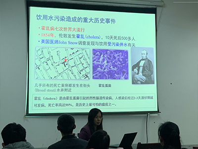开课前,刘会娟教授与学生们亲切交流,了解学生们的科研规划和研究思路,分享自己的科研经验,为学生们在科学研究和论文撰写方面提供了宝贵的经验和建议,并给予学生们充分的鼓励。课堂上,刘会娟教授以饮用水中有机污染物去除为主题,详细介绍了饮用水的常规处理工艺、强化常规处理工艺和几种典型的深度处理技术,阐述了不同工艺对饮用水中天然有机物和消毒副产物等新兴有机污染物的去除原理。刘会娟教授结合自己的科研经历,对饮用水的化学污染控制以及水质安全保障相关理论和技术体系做了深层次的分析,并提出了污水处理过程中将有价值的物质资源化的治理理念,使水处理工艺向着更安全、更经济的方向发展。授课结束后,学生们也积极与刘教授进行交流,表达了自己对饮用水安全的理解,以及学习本门课程后的收获。并将自己科研过程中遇到的困惑与刘教授进行了探讨,刘教授对学生的问题一一答疑解惑,使学生们受益匪浅。