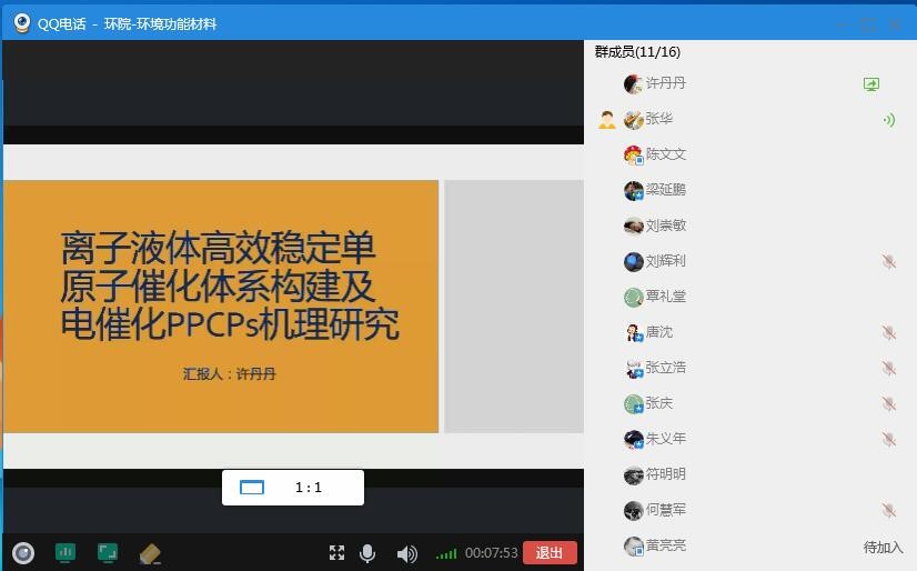 2020年2月29日,我院“环境功能材料和环境地球化学课题组”在线组织召开了2020年国家自然科学基金申报研讨会会。课题组全体成员参加了线上会议。会上,课题组成员对各自的基金申请书作了详细介绍,与会人员进行了热烈地讨论与交流。学院专家组朱义年教授就各位教师的国基申报课题,提供了一些建设性指导意见。曾鸿鹄院长,李艳红等副院长,也参加了会议,并对下一步申报工作安排进行了详细部署。