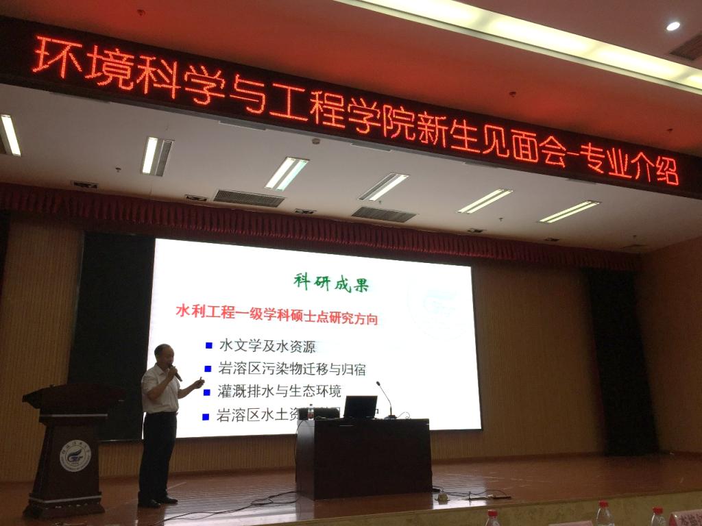 陈余道教授和方荣杰研究员分别从地下水科学与工程、水文与水资源工程专业的学科性质、专业沿革、人才的社会需求、师资力量、人才培养方案、毕业生的培养目标与毕业要求、教学安排、实践教学环节、毕业生就业去向与行业前景等几个方面进行了详细介绍,帮助新生们对两个专业有了更深刻的认识,最后,陈余道教授还为同学们送上了“以学为主,兼学别样”、“学习、生活不易,且行且珍惜”寄语。