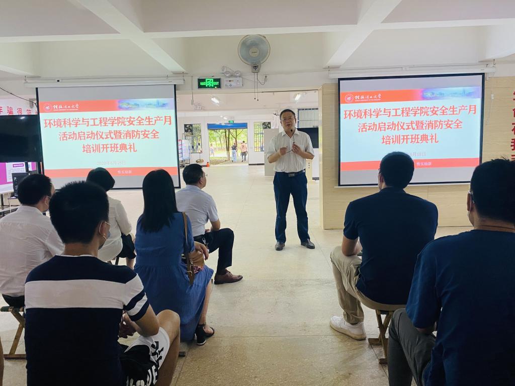 为进一步深化我院安全教育工作,持续提升学院安全教育水平和师生安全意识。6月18日下午,我院在教8栋负一楼“安全教育基地”举行安全生产月活动启动仪式暨消防安全培训班开班典礼。学校党委常委、副校长王敦球,学院党政领导班子,各教研室、实验室教师代表及学院研究生、本科生学生代表共计80余人参加活动,活动由学院党委姜子亮书记主持。