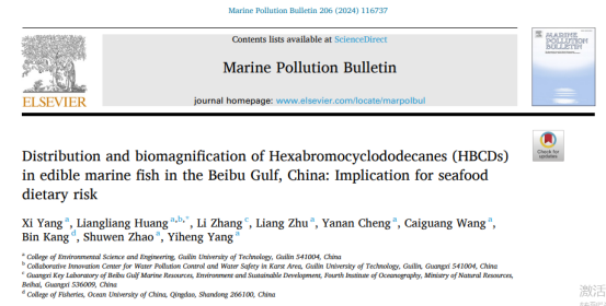论文推荐│中国北部湾食用海鱼中六溴环十二烷 (HBCD) 的分布和生物放大:对海产品膳食风险的影响