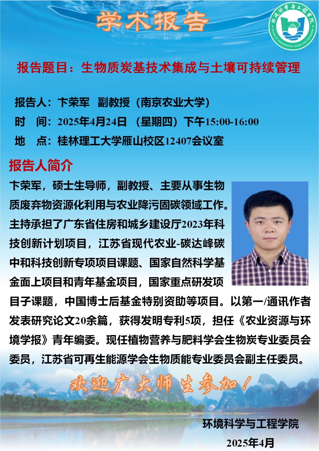 上一篇:南京农业大学卞荣军副教授应邀到我院作学术报告