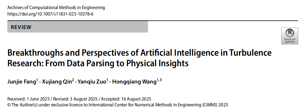 近日,在著名学术期刊Archives of Computational Methods in Engineering上发表题为“Breakthroughs and Perspectives of Artificial Intelligence in Turbulence Research: From Data Parsing to Physical Insights”的综述论文,由我校beat365手机版官网入口王洪强团队完成。