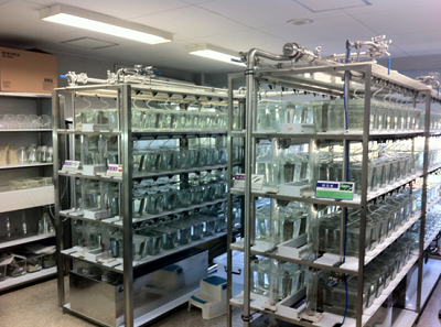 中国科学研究院污染物生态效应与环境安全研究室的张亚辉是我的指导老师,她在“生态毒理、水质基准”等研究方向有很深的造诣,独立承担及参与了多个项目,在国际一流学术期刊及会议发表论文20余篇。到达环科院的第二天我就与张老师见面探讨研修计划。张老师向我详细的介绍了实验室的情况,包括气相、液相、气质等仪器设备。实验室自制的流水式鱼类驯养室,长期驯养大型溞、小球藻、斜生栅藻、月牙藻、斑马鱼、稀有鮈鲫等水生生物。