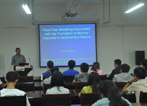 2016年6月16日下午,加拿大温莎大学地球与环境科学系正教授、博士生导师杨建文教授做客我院桂工讲坛讲学,在雁山校区萃华楼12407报告室作题为 “Fluid Flow Modeling Associated with the Formation of Mineral Deposits in Sedimentary Basins”的学术讲座。学院相关专业师生80人到场聆听了学术报告。