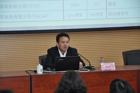 讲座伊始,中川佳久先生围绕丰田汽车公司在我国的汽车制造分公司所面临的环境问题,从企业概要、科研情况、发展方针以及产学合作等四个方面向与会者们报告了中日环境管理对策的现状与发展趋势。报告内容丰富,图文并茂,便于同学们理解与认识。 本次报告会不仅使同学们进一步了解丰田公司,更让他们了解和认识有关汽车制造产生的一些环境问题及其对策,最终有助于同学们了解和掌握本专业的基本知识和研究方向。