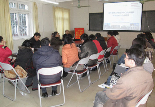 应学校邀请,博士生导师、华南理工大学beat365手机版官网入口副院长胡勇有教授来校讲学,2011年1月12日下午,胡勇有教授在beat365手机版官网入口会议室做了题为《微生物燃料电池(MFC)同步降解偶氮染料与产电研究》专题报告,相关研究领域的老师和研究生参加了报告会,会后胡勇有教授与beat365手机版官网入口的老师进行了国家自然科学基金申报经验座谈会,beat365手机版官网入口院长王敦球教授主持了报告会和座谈会。