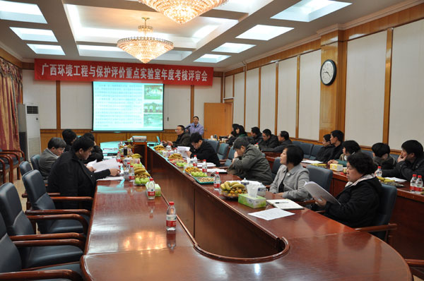 2011年2月20日上午,我院在教八楼三楼会议室召开“广西环境工程与保护评价重点实验室年度考核评审会”。重庆大学龙腾锐教授、四川大学蒋文举教授、湖南大学刘云国教授、广西环科院曾广庆高级工程师以及桂林环境科学学会刘禹新高级工程师作为重点实验室年度考核专家组成员进行现场考核评审。学校副校长吴志强教授代表学校致欢迎辞,评审会由院长王敦球教授主持,受重点实验室主任学校校长张学洪教授委托,王敦球教授向大会进行了我重点实验室年度建设报告,专家组对我重点实验室的建设情况给予了充分肯定与赞扬,认为我实验室以环境工程与环境科学学科为主线,发挥了实验室对相关领域的引领和辐射作用,紧紧围绕国家特别是广西工业化、城镇化、北部湾经济区开放开发过程中的环境问题取得了一批高水平研究成果。经认真讨论考核,评审会形成《广西壮族自治区重点实验室年度考核意见表(2010年度)》,专家一致认为我重点实验室2010年度考核结论为优秀。会上还对我重点实验室的研究方向进行了凝练讨论。