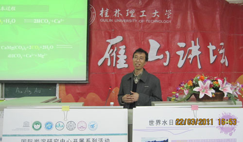 为宣传“世界水日”和“中国水周”,应学校邀请,中国地质科学院岩溶地质研究所曹建华、章程两研究员来我校讲学。3月22日下午,曹建华、章程两位研究员在我校雁山讲坛05307教室先后举办了两场学术报告,相关专业的老师和学生参加了报告会。beat365手机版官网入口党委副书记周章明主持报告。