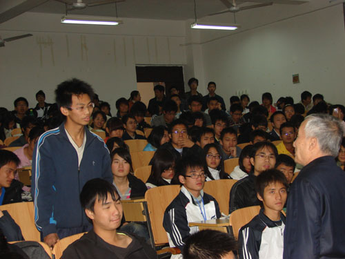 首先,薛院士勉励同学们珍惜现在的良好条件,认真学好基础知识,通过介绍他在多年教育工作中遇到的事例,薛院士指出:无论科学研究,还是为人做事,都要实事求是,踏实勤奋,不可好高骛远。之后,薛院士走到同学身旁,鼓励大家发言;在互动环节中,同学们踊跃提问,从推荐水文学书目到了解地下水沉降,薛院士无不耐心解答,还就中国文化传承问题提出了精辟的见解。薛院士平易近人的态度、言传身教的精神,让同学们领略了大师的风范,在求学做人上都受益匪浅。