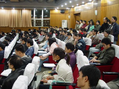 陈同斌研究员从超富集植物的概念出发,介绍了超富集植物的判断标准及由超富集植物而发展起来的植物修复技术,阐述了砷污染土壤的毒害及砷超富集植物蜈蚣草对砷的富集特征和研究现状,展示了其课题组在国内开展的砷污染修复工程进展情况。报告内容翔实,资料丰富,给在场师生留下了深刻的印象。其渊博的知识和生动的讲解也博得了师生的热烈掌声。