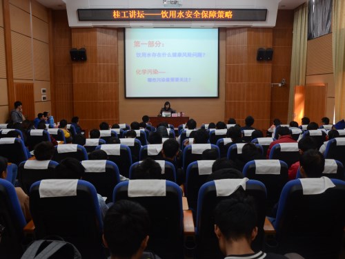 讲座中,刘会娟研究员以饮用水存在的健康风险、保障用水安全及饮用水未来的方向等内容为主题,通过分析饮用水净化工艺及饮用水指标,使同学们了解饮用水质量对人类健康的重要性,其后对饮用水中物质转化、饮用水二次污染问题以及饮用水消毒副产物等知识点进行了介绍,并着重对饮用水中砷、氟以及藻类污染等问题进行了阐述。刘会娟研究员结合自己的科研经历,对饮用水的化学污染控制以及水质安全保障相关理论和技术体系做了深层次分析,提出了最佳技术支持下最优工艺模式,即讲求技术型和经济型相结合,水处理应以安全、低能耗、最小化学品应用等为出发点。