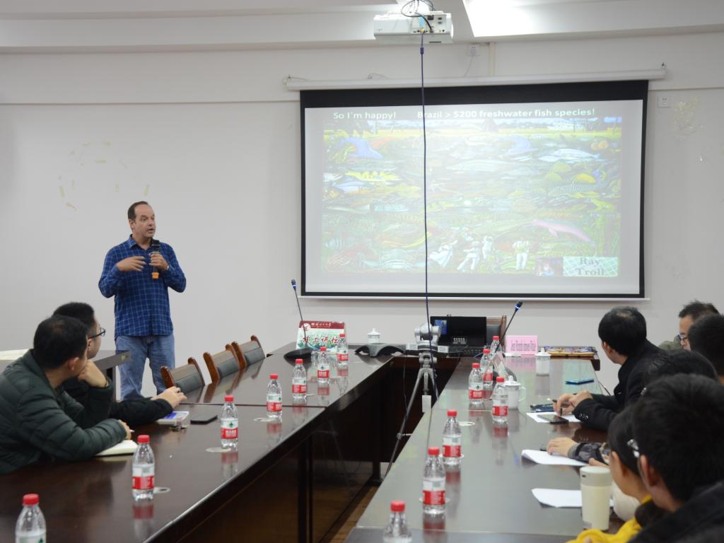 为了增强同学们对动物生态学及其保护的了解,我院特邀巴拉那联邦大学的Jean Ricardo Simoes Vitule教授于12月16日在雁山校区萃华楼12407会议室做了题为“巴西淡水非本地鱼类入侵的原因及后果”的讲座。约80余师生参加了此次讲座。