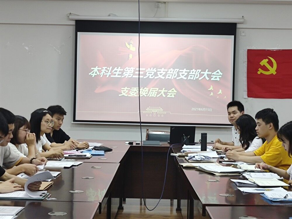 6月15日,我院本科生第三党支部在雁山校区12407会议室召开党支部委员换届大会,选举产生新一届的支部委员。会议由支部书记孙云龙老师主持。