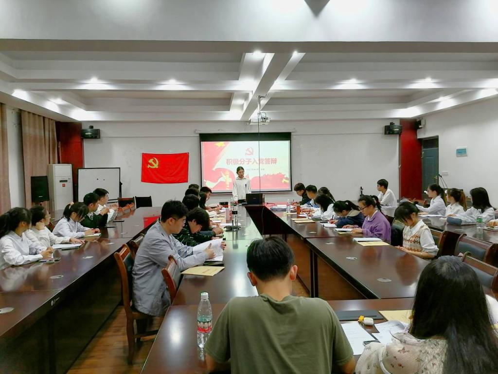 会议开始,支部副书记宣读入党积极分子答辩流程及注意事项,流程宣读完毕后积极分子按照顺序依此上台。本次大会共有12名入党积极分子进行答辩,他们主要从自我介绍、对党的认识、入党动机以及积极分子考察期的个人总结四个部分进行。