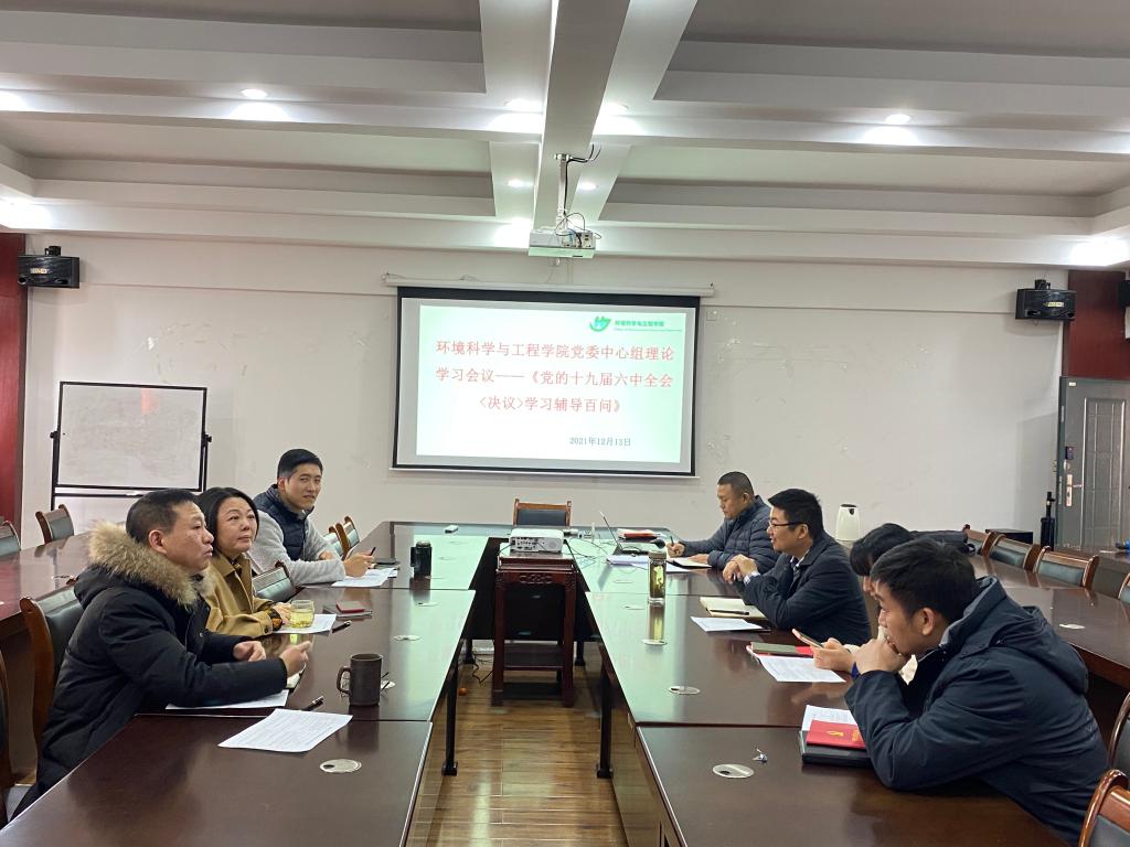 12月13日上午,beat365手机版官网入口在雁山校区萃华楼12407会议室开展党委中心组(扩大)理论学习会,专题学习《党的十九届六中全会〈决议〉学习辅导百问》一书,学院全体党政领导班子、党支部书记、各教研室负责人参加会议,学习会由学院党委书记姜子亮主持。