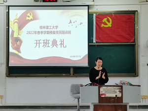 典礼在庄严的国歌中正式拉开序幕,与会全体成员起立,奏唱国歌。开班仪式上,测绘地理信息学院专职组织员吴莲莲发表致辞,她首先对本次预备党员培训班开班表示祝贺,并向全体预备党员提出三点希望:一是认真学习,必须要努力了解党的基本理论,基本路线,基本纲领,基本经验,了解党员的权利与义务;二是端正入党动机,要在思想和行为上更进一步向党组织靠拢,树立正确的三观;三是珍惜本次培训机会,严格遵守课堂纪律。
