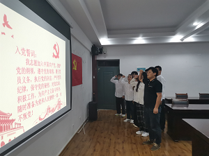 大会严格按照党员发展程序进行。首先,支部副书记冯致远同志介绍了会议相关纪律和接收发展对象的程序。接着每名预备党员同志分别宣读其《入党志愿书》,向党组织汇报了从积极分子到发展对象以来的思想、工作、生活、学习等方面的进步和不足,并表明对党的向往与忠诚。接着由各申请同志和接收对象的入党介绍人对其积极分子期间的表现情况进行评价,肯定了这一年积极分子期内或考察期思想、工作、学习等方面的表现,对各位发展对象提出不足点,也指出了改正的方向,然后表达了是否建议转为接收为预备党员的意见。最后,经过与会正式党员的无记名投票表决,同意张郅力等七名同志按期接收成为中共预备党员。会议宣布后,预备党员同志们由杨平平老师带领,一起面向党旗进行庄严宣誓,也向大会表达了自身的想法与决心,不忘初心跟党走,在今后的学习工作中,坚定目标、严格要求自身,努力改正现有不足,积极向优秀共产党员学习树立先锋模范作用,争取早日正式加入中国共产党。