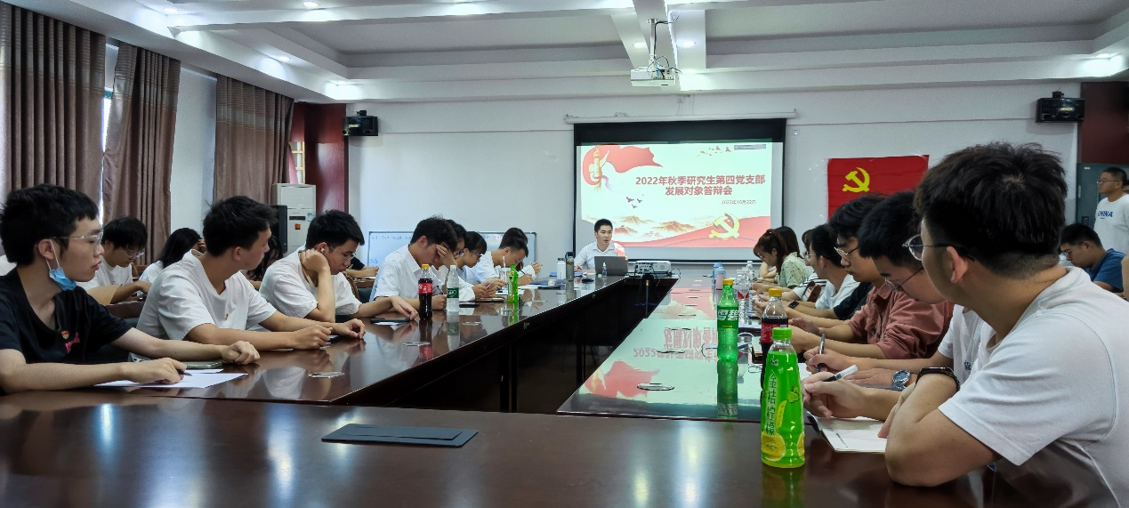 为进一步提高党员发展质量,扎实做好我院研究生第四党支部的发展党员工作,按照上级党组织要求,于2022年10月22日,在雁山校区12407会议室召开2022年秋季发展对象答辩会。支部47名党员中有46名党员通过线上线下相结合的方式参加了本次会议,会议由支部副书记刘吉刚主持开展。