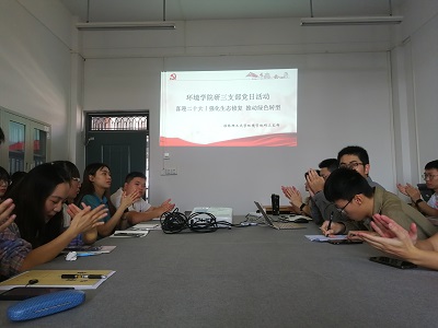 在喜迎党的二十大胜利召开之际,为进一步增强党支部的凝聚力和向心力,培育党员干部爱党、爱国的情怀,强化使命担当。9月25日下午,我院研究生三支部在雁山校区萃华楼12412会议室组织开展了“喜迎二十大,强化生态修复,推动绿色转型”党日活动。本次党日活动由支部副书记路一鸣同志主持,党支部全体党员同志参加会议。